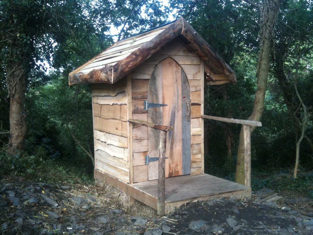 Well, after two days frenzied activity, here is the new treebog. Thanks to all who helped bring it about – it is truly a thing of beauty, and should settle nicely into its woodland setting. We used sawmill skins almost exclusively to build it, and its the first of the treebogs here on the farm to feature a proper separator seat.