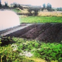 We’ve tried various approaches – stripping off the turf and digging the soil over (extremely hard work), digging a spade depth and turning the sod over to leave the grass at the bottom (very hard work but slightly easier, and basically ploughing with a spade), and lastly, mulching very heavily with straw, cardboard and manure. There is a huge amount of this to do, none of which I could accomplish alone, and so am lucky to have help in the form of Dougie, and Eugene on a regular basis.