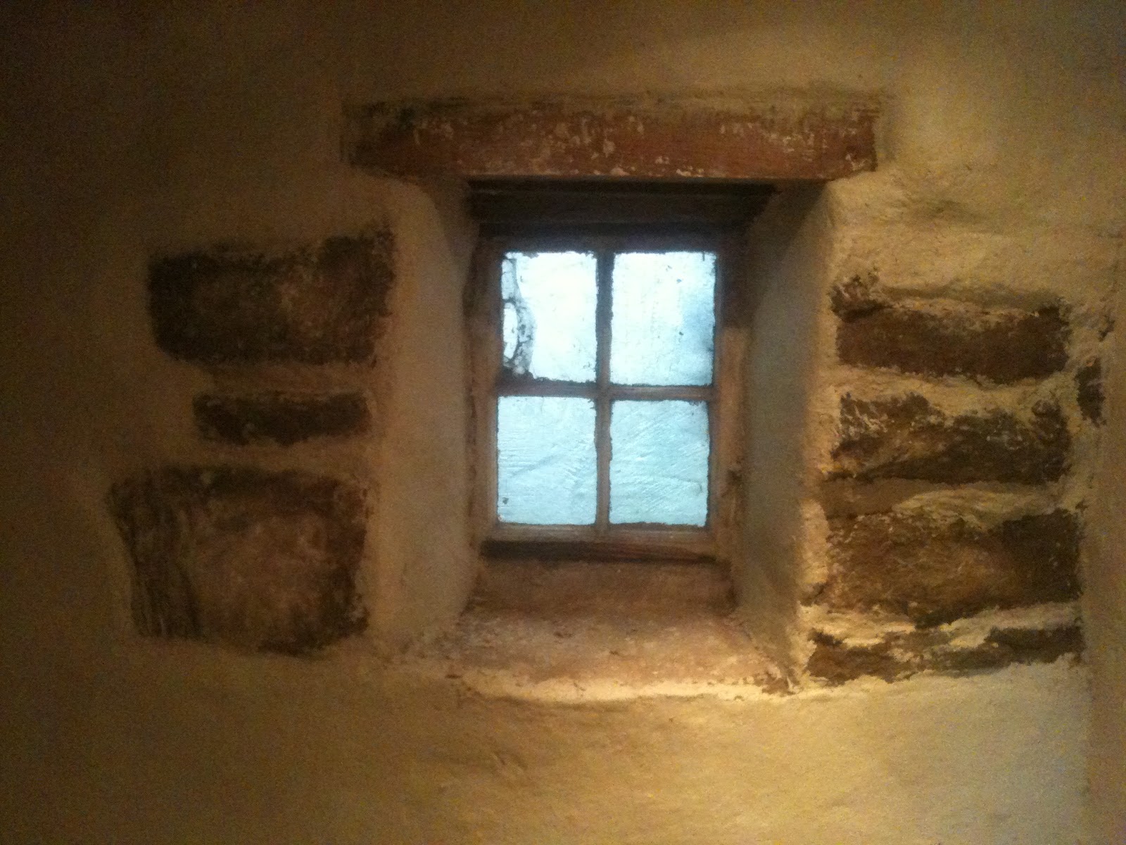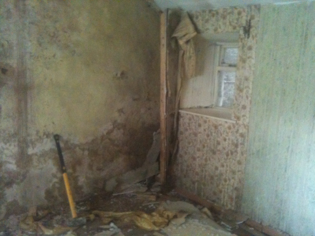 Here’s the little bathroom window above, and the room as originally found, before we had uncovered the window –