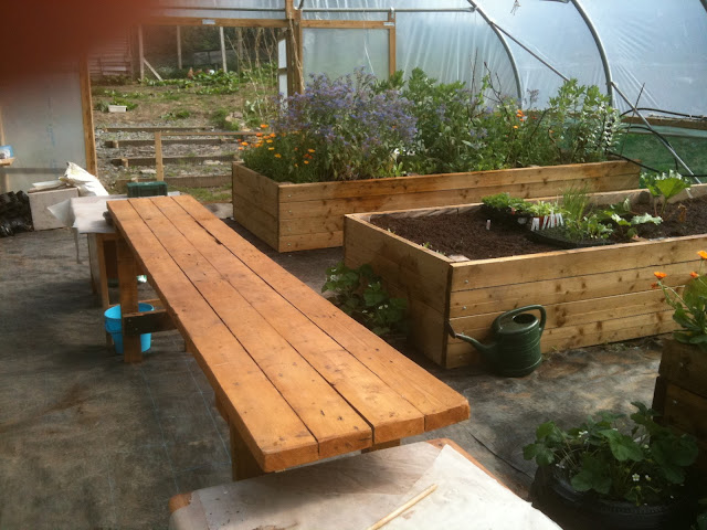 I’d forgotten how many useful things I managed to make around the farm this last year -This potting bench was made from scrap timber, and the giant raised beds are deep enough to allow access for wheelchair users.