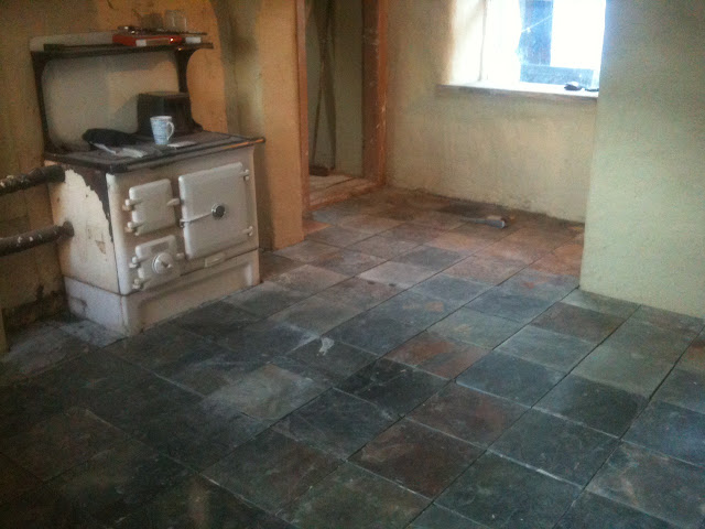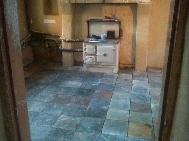 Well that was a busy day – we all learned something new.  Brendan and I finished laying the slate through the kitchen, into the hall, and on to the bathroom, and Claire went off to Welig Crafts learn how to make baskets with Clive Lyttle –