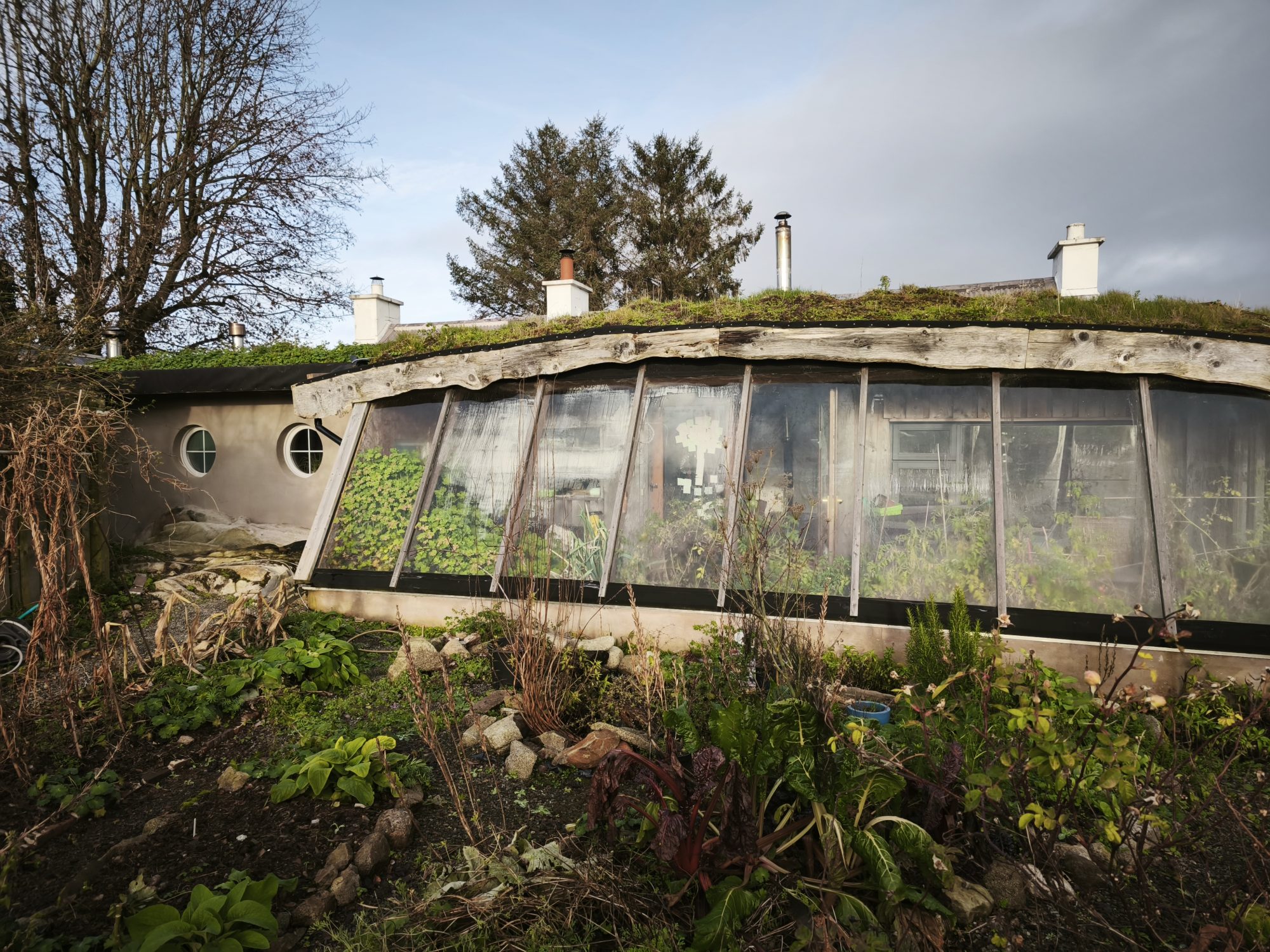 The zone0 permaculture garden outside our earthship conservatory