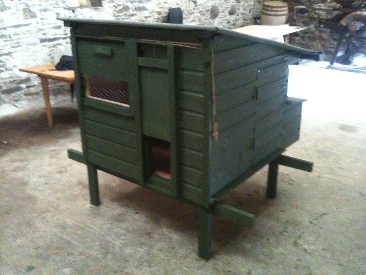 Here is my best attempt at a hen house yet. This version has front and rear windows, side door, 3 nesting boxes, and a pull out floor. As with all my constructions it won’t blow away. The frame was made from reclaimed 3×2 timber, and we went mad and bought the cladding and plywood – total cost £100 all in.