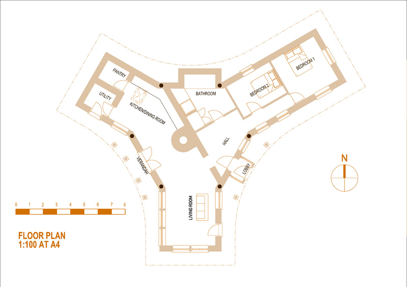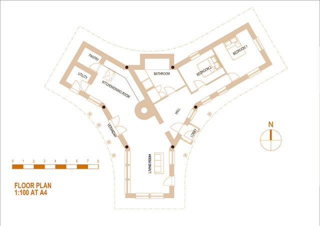 And here is the floor plan. The elevation above is a view from the South, looking at the end of the living room. Exciting stuff, although it is hard to imagine any dwelling cosier than the truck-house.