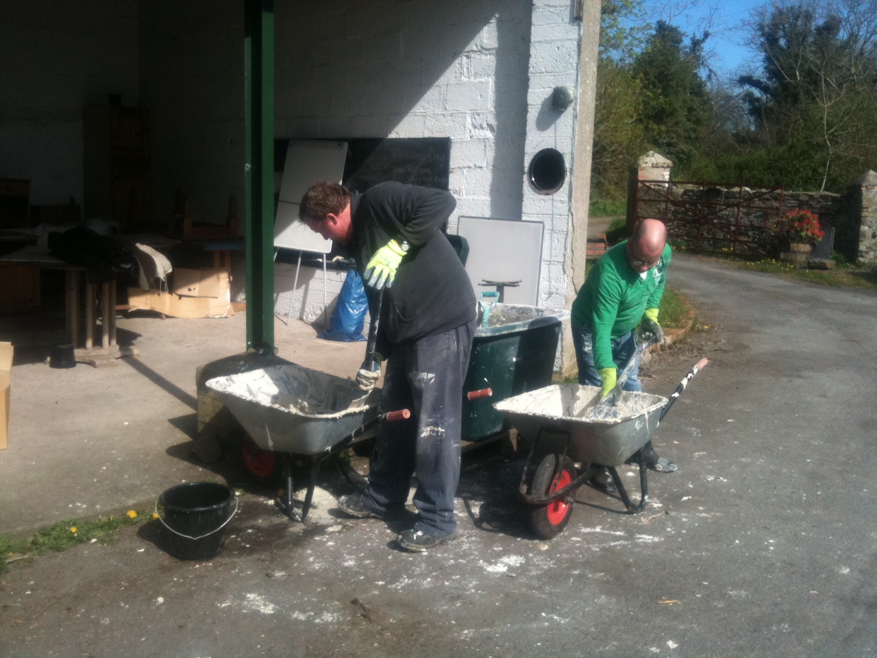 | Michael and Mark mixing lime-hemp plaster |