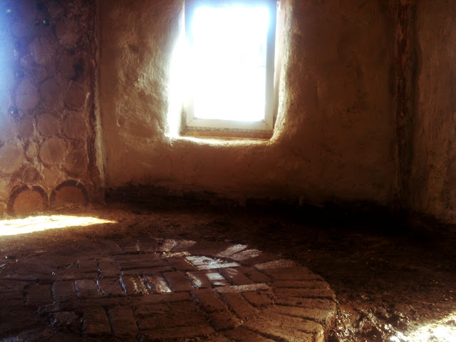Later in the day we used a clay mix to make a mortar to hold the central brick hearth, and pointed it with the same clay mix.