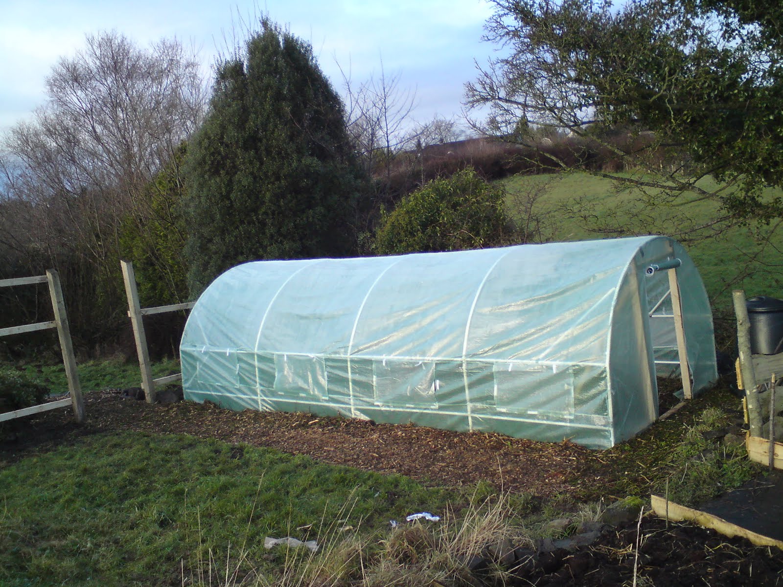 I answered a forum post the other day that asked about how to get a polytunnel on a budget. I won’t go over how useful polytunnels are here – it’s been covered a million times elsewhere. Needless to say that if you are growing your own veg, they are a godsend, although aesthetically there are obvious issues. Anyhow, if you are on a budget, there are a number of ways that you can put something together that will do the job; some are more permanent than others.