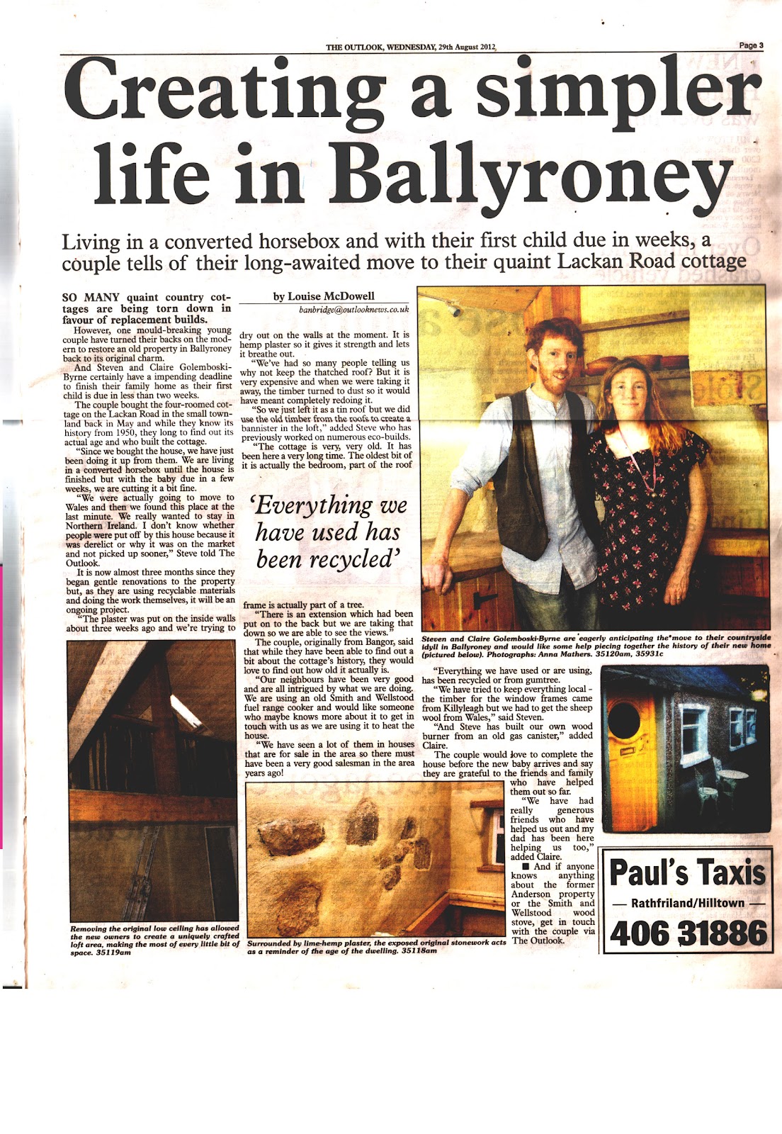 Well that was a busy old day. We made our appearance in the County Down Outlook on Wednesday, asking for more information about the house, and specifically, the range cooker. Gary, nephew of the previous owner came to visit us yesterday, and we learned a lot about the building work that he’d helped with over the years. Then Grace, youngest of the family who grew up here, visited today and brought along all sorts of interesting things.