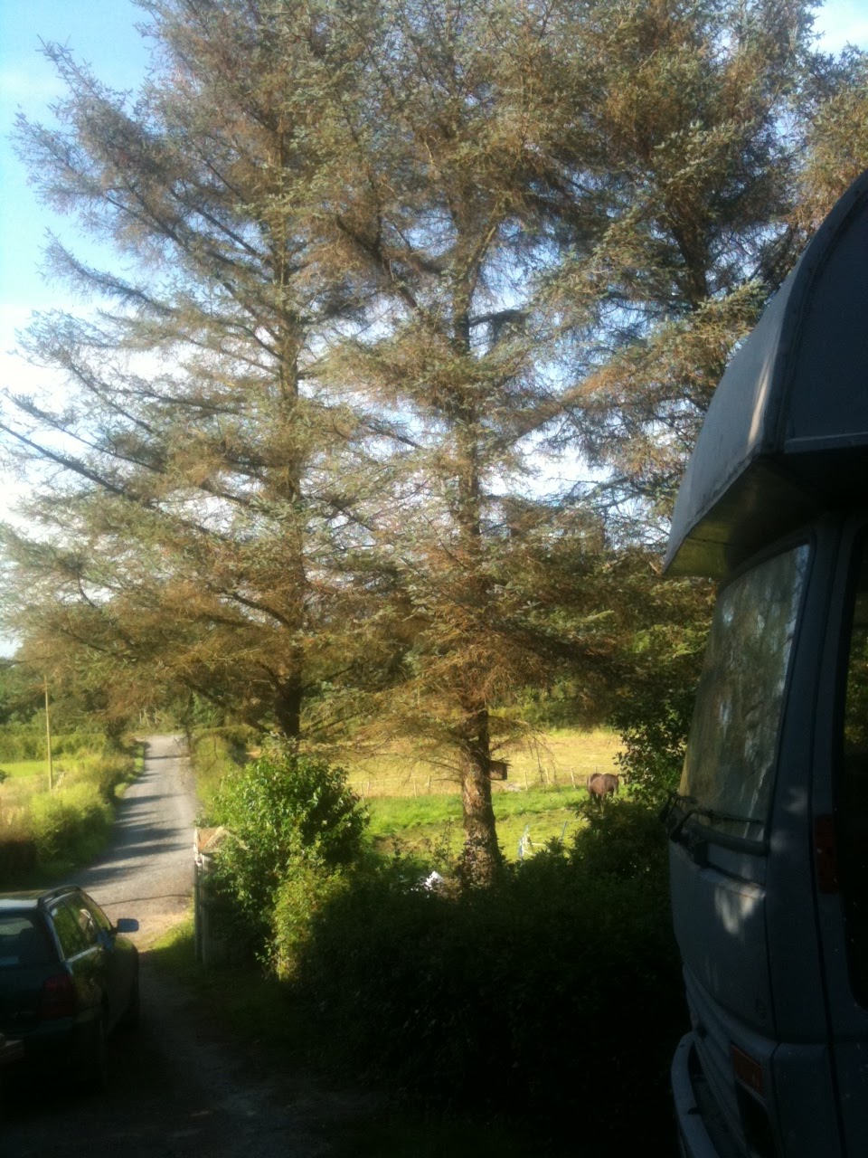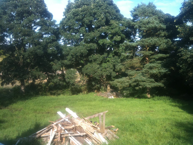 The little field next to the house is surrounded by mature trees, and is a real sun trap in the afternoons. One more bonfire and we’ll finally be rid of the last of the woodwormy, wet, beetle infested old wood.