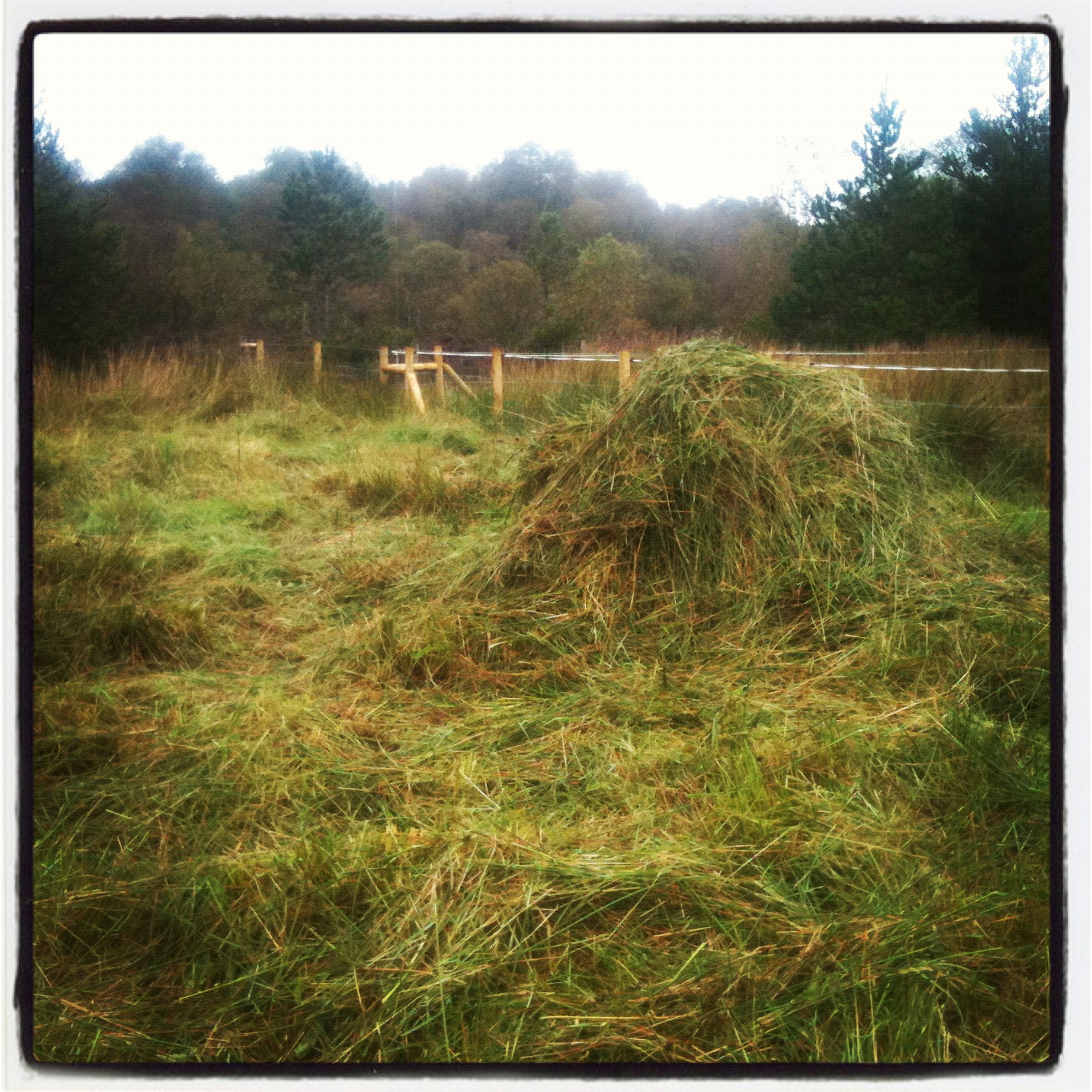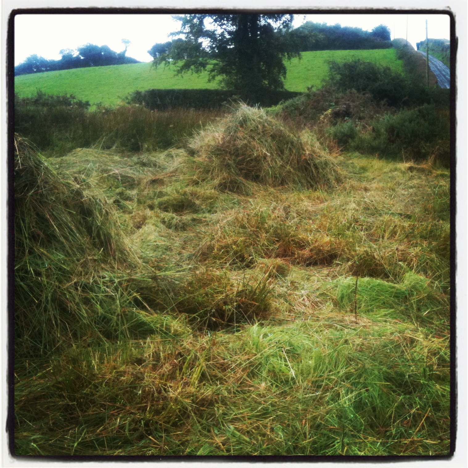 Having once been entirely bog, we’ve got a fair amount of rushes growing. In fact the wood field had so many this year that it was more than half covered. The horses have dealt with the majority of the rushes in their bit of the field, but the far end is fenced off following Sherafey’s accident in the ditch earlier in the year. It’s a fair sized bit of land, about 1/10th of an acre, and we’ve decided to grow (at least some of) our willow crop in it.