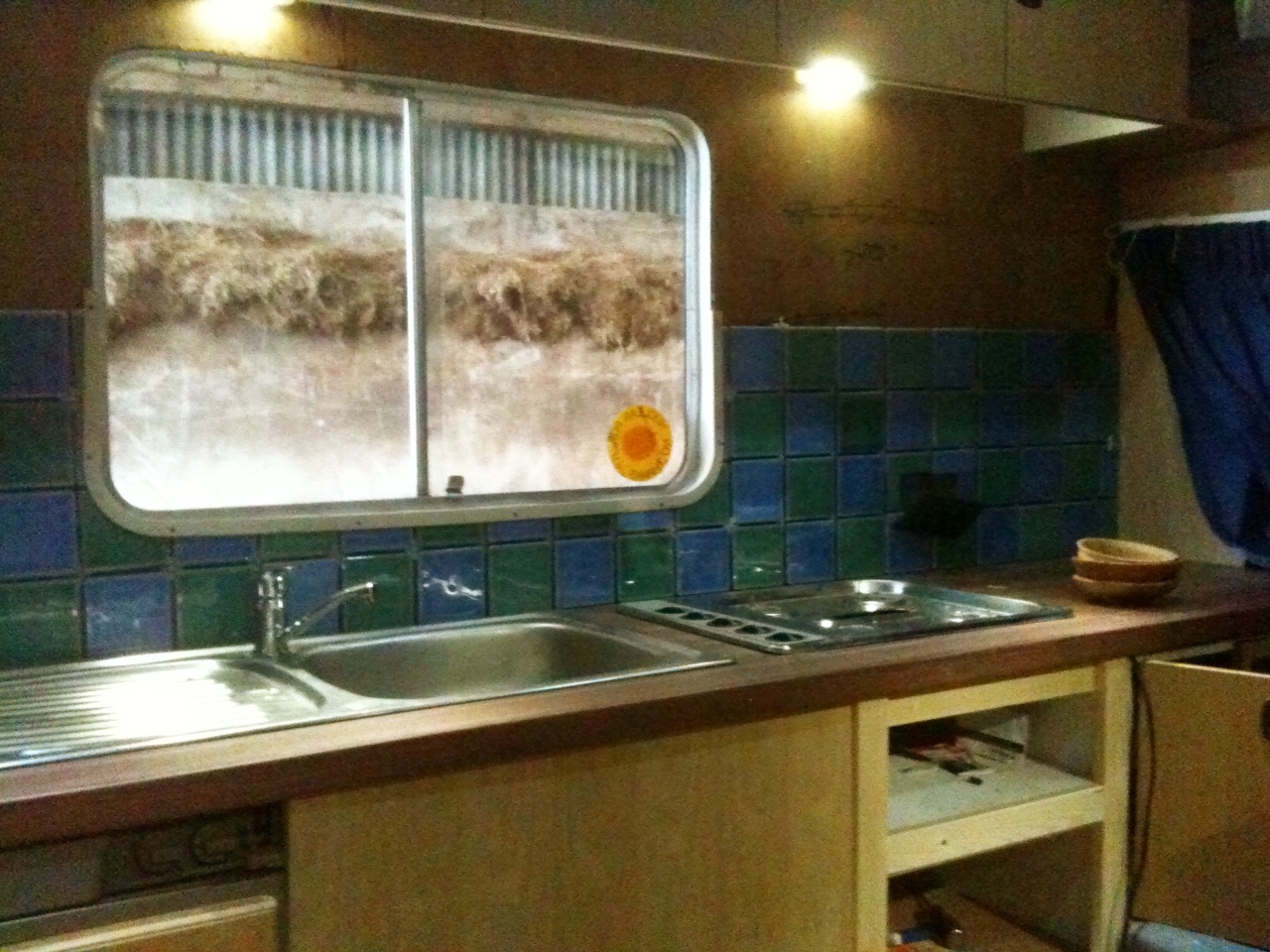 Today I got the kitchen tiled, with the freecycled wall tiles and they look rather fair –