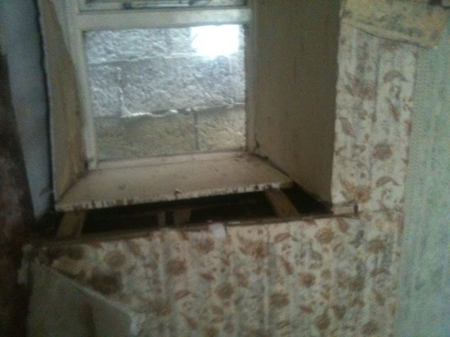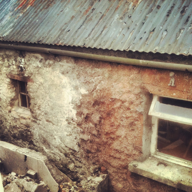 The result of all the stable building is that we have less extension, which can only be a good thing. I finally got to find out what the figure is above the bedroom window, which until today had a block wall 6 inches from it