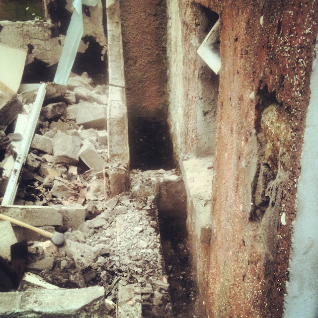 It also means that it was finally possible to lower the ground level outside – the first thing you should do in the fight against damp. I took nearly two feet of rubble, concrete and soil to get down to solid ground.  To give you some idea just how close the extension was to the house –