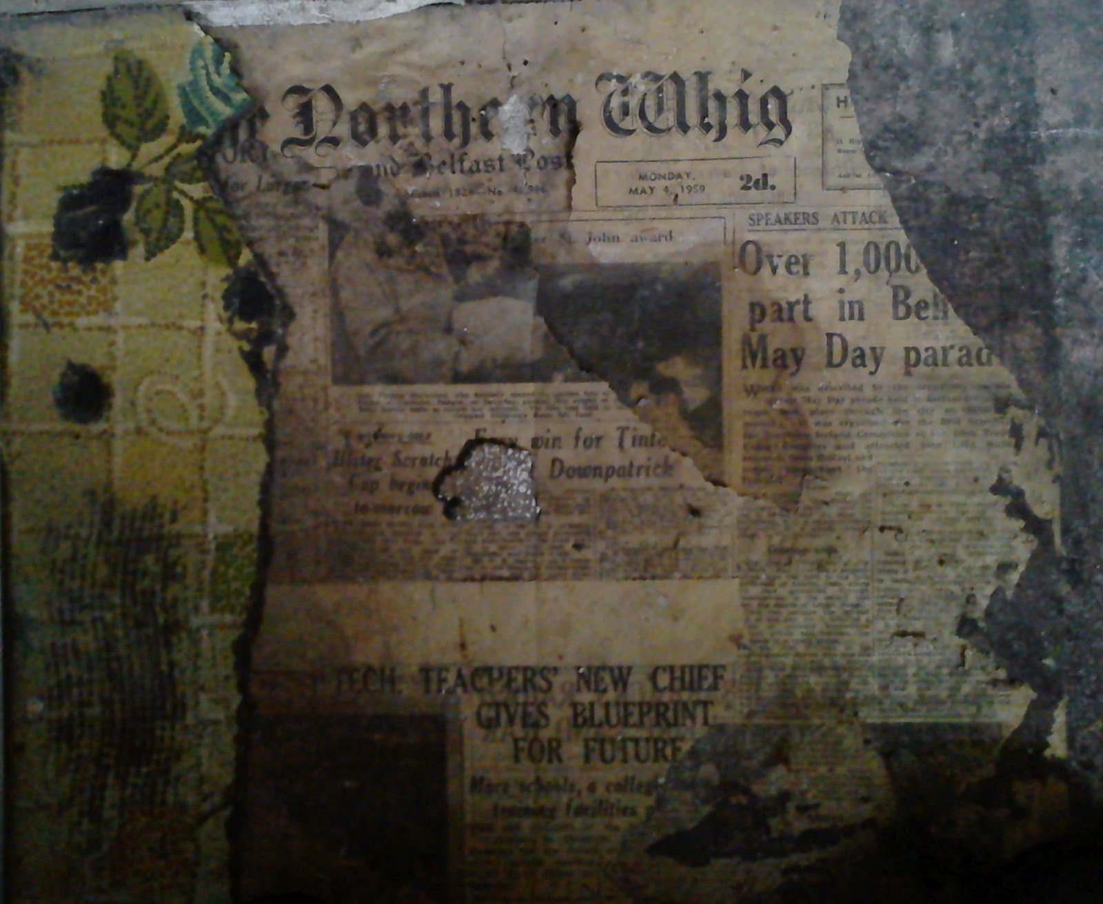 At the time the ‘modernisations’ were being undertaken, the builders very helpfully used newspaper to fill gaps around the windows before plastering, and to line the floors before they put the new lino down. Here’s a page that was still in place when we got the place.
