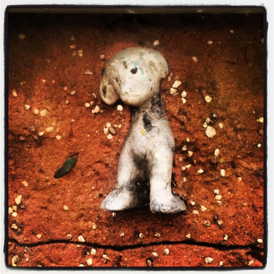 and it appears to be a small dog, which is quite appropriate for us. The old ladies that lived here went round and put everything from bits of glass to toothpaste tops (and a small dog figurine) into the new render.