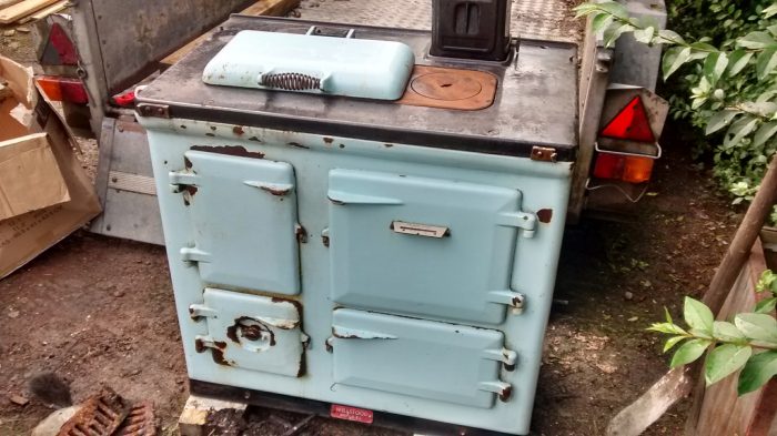 It seems that concentrating on range cookers for a while seems to be attracting them. Until a couple of weeks ago we’d never heard of the Wellstood Two (or WD 36) stove, and then having just put one in, out of the blue we are very kindly offered another. This second one has had a somewhat harder time than the first, having been outside for over three years, but these things are incredibly resilient, and after a bit of a superficial clean, it is probably usable, though the boiler is most likely done.